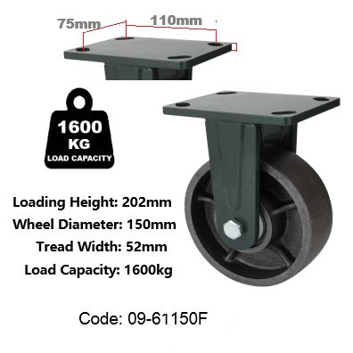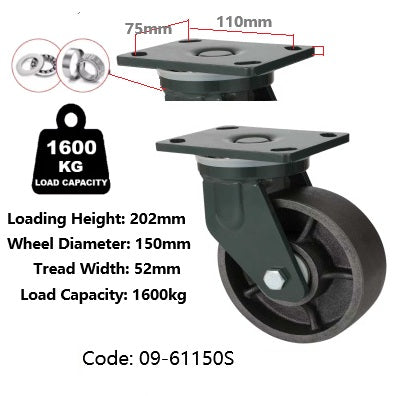 Ø150mm (6") Extra Heavy Duty Cast Iron Wheel Castors | 1600KG capacity per castor